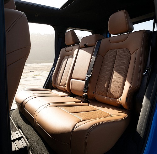 - Geräumig, robust und für alles bereit: Interieur des Jeep Recon zeichnet sich durch handgefertigte Materialien, cleveren Stauraum und anpassbare Details aus, die sich perfekt in den Jeep-Lebensstil einfügen, darunter mehr als 170 serienmäßige Sicherheitsmerkmale