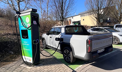Cooler elektrischer Pick-up mit guter Reichweite und mächtig Power. 3,5 Tonnen Anhängelast machen ihn zu einem Spezialisten. |