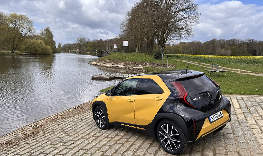 Gerade im Test: Toyota AYGO X Hybrid. Mit 2,9 l/100 km unterwegs